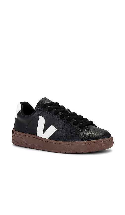 Veja Urca Sneaker in Black. - size 35 (also in 36, 37, 38, 39, 40) Veja Urca Sneaker in Black. - size 35 (also in 36, 37, 38, 39, 40) Leather upper with rubber sole. Made in Brazil. Lace-up front. Lightly padded collar. Rubberized V logo at sides. VEJA-WZ217. UC0703507A. Parisian based and Brazilian produced, sustainable sneaker brand Veja creates organic, innovative collections sourced from South America. 'Veja' translated from Portuguese-Brazilian dialect meaning 'look', aims for wearers to 'look beyond sneakers, look how they are made'. Their iconic silhouette naturally sourced from 100% organic cotton canvas and fairly traded rubber soles allows wearers to go about their day comfortably, all while leaving a positive impact on the environment. From linking together economic justice, social initiatives and sourcing products that impact the environment positively, Veja has proven that sustainable styles can also be deemed fashionable. Shop the latest in fashion from Veja