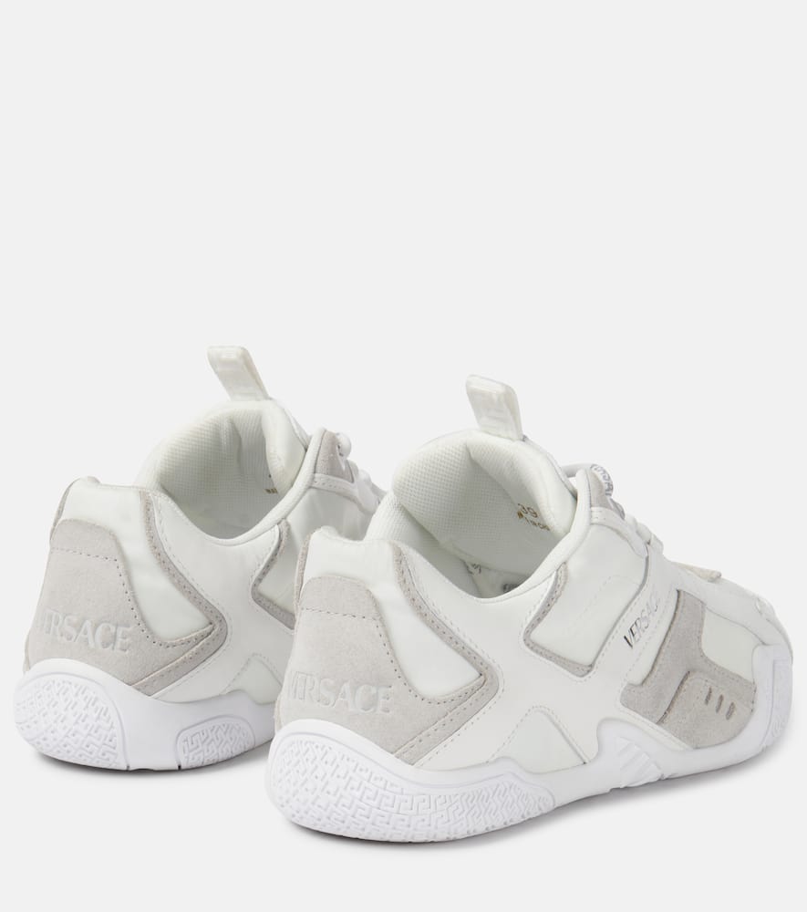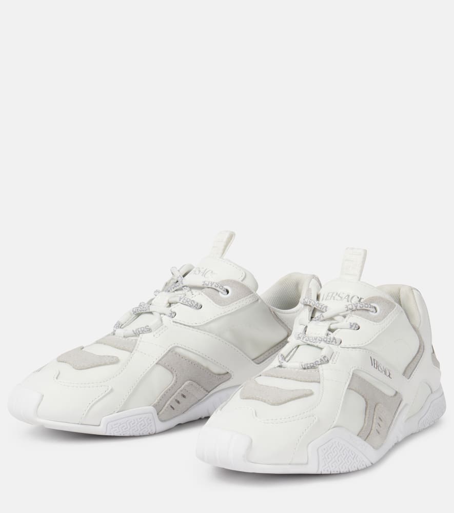 Upper: leather. Lining: fabric. Sole: fabric insole, rubber sole. Toe shape: almond toe. Made in China. Includes: shoe box, dust bag. Designer color name: 2EJ70-White+Concrete. Closure: lace-up. Trim: fabric. Shop the latest Versace Low-Top Sneakers for women now.