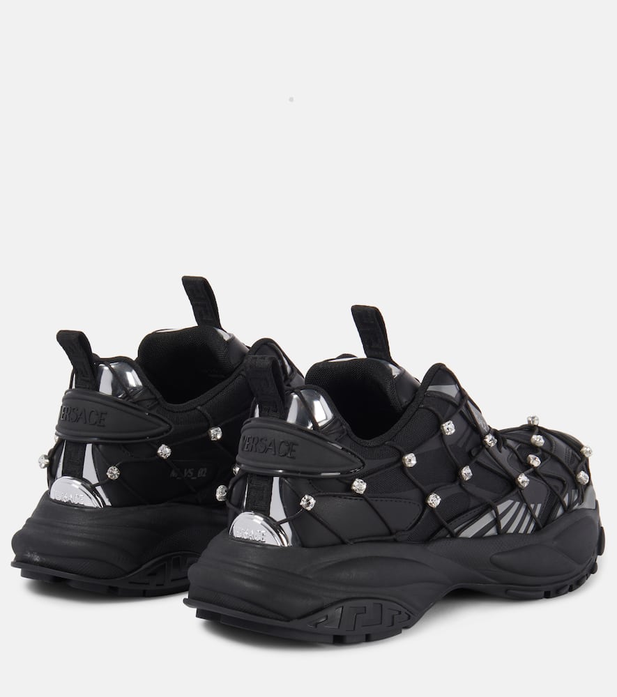 Upper: fabric. Lining: fabric. Sole: leather insole, rubber sole. Toe shape: almond toe. Made in Italy. Includes: shoe box, dust bag. Designer color name: Black Silver. Shop the latest Versace Low-Top Sneakers for women now.