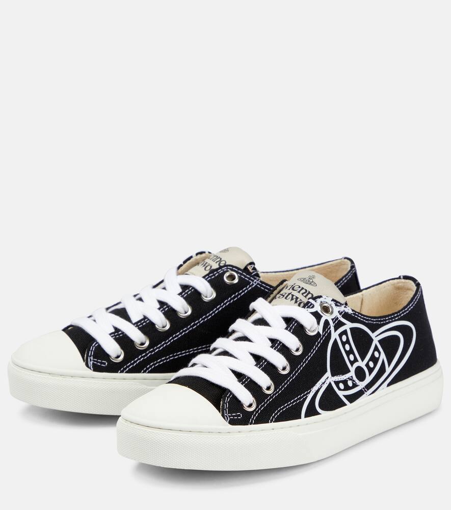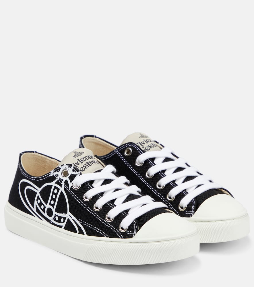 Upper: fabric. Toe shape: round toe. Sole: fabric insole, rubber sole. Made in Portugal. Designer color name: Black. Comes with a box. Closure: lace-up. Shop the latest Vivienne Westwood Low-Top Sneakers for women now.