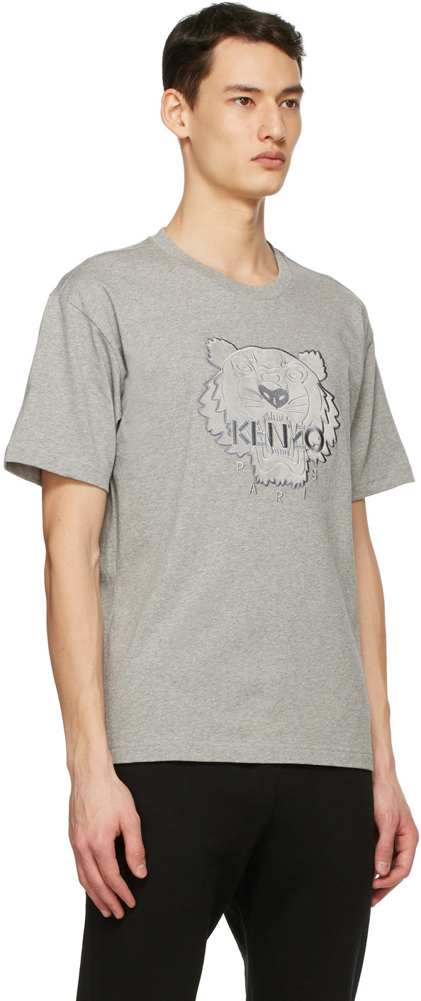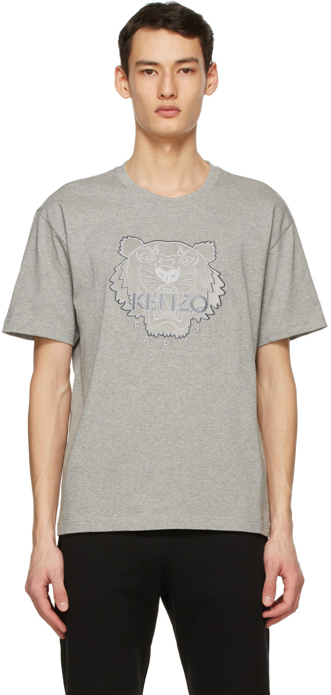 Kenzo Grey Embroidered Velvet Tiger T-Shirt