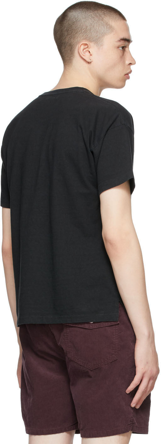 Short sleeve garment-dyed heavyweight cotton jersey T-shirt in black. Rib knit crewneck collar. Text printed in off-white at chest. Vented side-seams. Dropped shoulders. Drop-tail hem. Supplier color: Black 100% cotton. Brand: Remi Relief