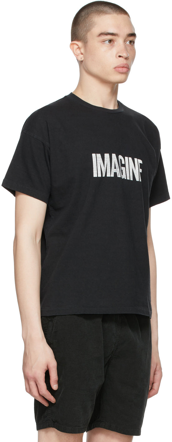 Short sleeve garment-dyed heavyweight cotton jersey T-shirt in black. Rib knit crewneck collar. Text printed in off-white at chest. Vented side-seams. Dropped shoulders. Drop-tail hem. Supplier color: Black 100% cotton. Brand: Remi Relief