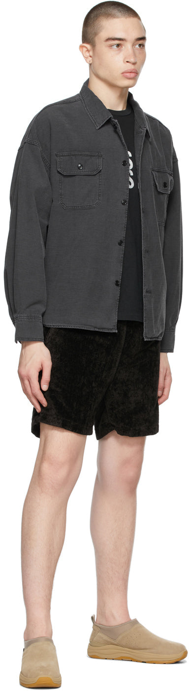 Short sleeve garment-dyed heavyweight cotton jersey T-shirt in black. Rib knit crewneck collar. Text printed in off-white at chest. Vented side-seams. Dropped shoulders. Drop-tail hem. Supplier color: Black 100% cotton. Brand: Remi Relief
