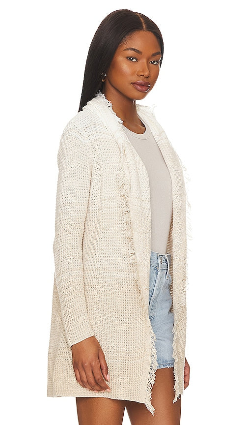 27 miles malibu Jupiter Cardigan in Cream. - size L (also in M, S, XL, XS) 27 miles malibu Jupiter Cardigan in Cream. - size L (also in M, S, XL, XS) 100% cotton. Made in China. Hand wash. Open front. Fringe trim. Midweight open knit fabric. 27MR-WK458. JUPITER. The name 27 Miles refers to the original length of Malibu, the scenic beachfront city in Los Angeles., California. Their laid-back luxe sensibility blends beachy bohemian basics with modern knits that transition from season to season. Shop the latest in fashion from 27 miles malibu