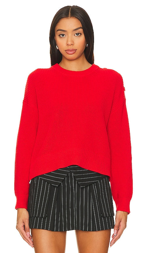 525 Ida Button Shoulder Solid Pullover Sweater in Red