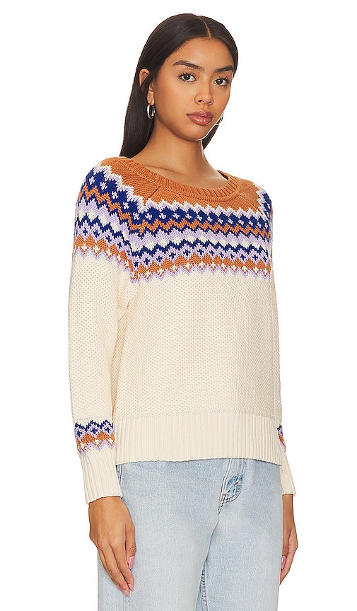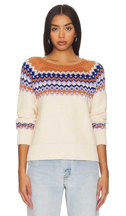 525 Jen Fair Isle Pullover Sweater in Cream. - size L (also in M, S, XL, XS) 525 Jen Fair Isle Pullover Sweater in Cream. - size L (also in M, S, XL, XS) 97% cotton 3% nylon. Made in China. Machine wash. Multicolor geometric detail at collar and cuffs. Midweight knit fabric. 525A-WK671. 110016364. A favorite of celebrity stylists, the 525 story began in Brooklyn in 1983. The secret to its industry staying power and stellar reputation: A focus on high-quality cotton sweaters with a range that combines a solid foundation of staples and no shortage of seasonal trend-focused updates. The design team is constantly pushing their creative boundaries, developing new yarns and colors that appeal to all ages and budgets. Truly full spectrum, 525 offers something for everyone: from classic to cutting-edge; from cotton to cashmere. Shop the latest in fashion from 525