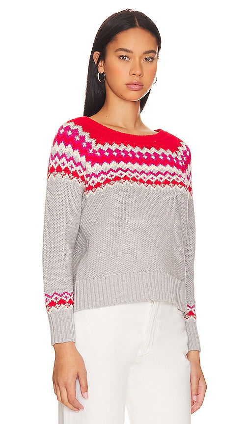 525 Jen Fair Isle Pullover Sweater in Grey,Red. - size L (also in M, S, XL, XS) 525 Jen Fair Isle Pullover Sweater in Grey,Red. - size L (also in M, S, XL, XS) 97% cotton 3% nylon. Made in China. Machine wash. Neckline pattern detail. Midweight knit fabric. 525A-WK673. 110016364. A favorite of celebrity stylists, the 525 story began in Brooklyn in 1983. The secret to its industry staying power and stellar reputation: A focus on high-quality cotton sweaters with a range that combines a solid foundation of staples and no shortage of seasonal trend-focused updates. The design team is constantly pushing their creative boundaries, developing new yarns and colors that appeal to all ages and budgets. Truly full spectrum, 525 offers something for everyone: from classic to cutting-edge; from cotton to cashmere. Shop the latest in fashion from 525