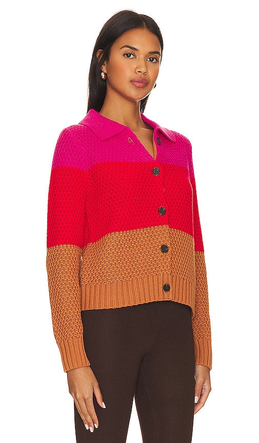 525 Joanna Colorblocked Honeycomb Cardigan in Red