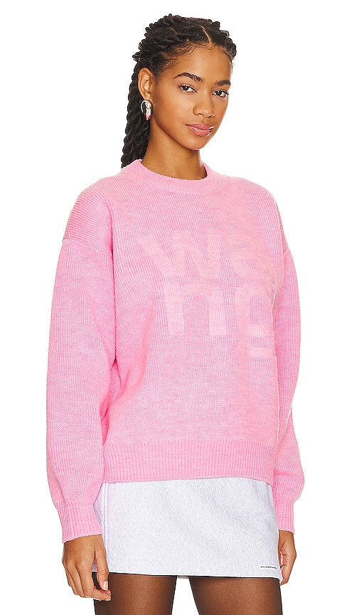 Alexander Wang Debossed Stacked Logo Unisex Pullover in Pink. - size L (also in M, S, XS) Alexander Wang Debossed Stacked Logo Unisex Pullover in Pink. - size L (also in M, S, XS) Self: 74% acrylic 26% polyester Trim: 69% acrylic 24% polyester 6% polyamide 1% elastane. Made in China. Dry clean only. Midweight knit fabric with debossed logo at front. AWAR-WK17. 4KC4231020. Alexander Wang adds measured depth to his signature tough-sexy pieces using a sultry scarlet and feminine blush alongside his favorite black and grey hues. Expect luxe hybrids of your favorite outerwear as well as layers, chunky knits, and sleek satins in this collection. Shop the latest in fashion from Alexander Wang