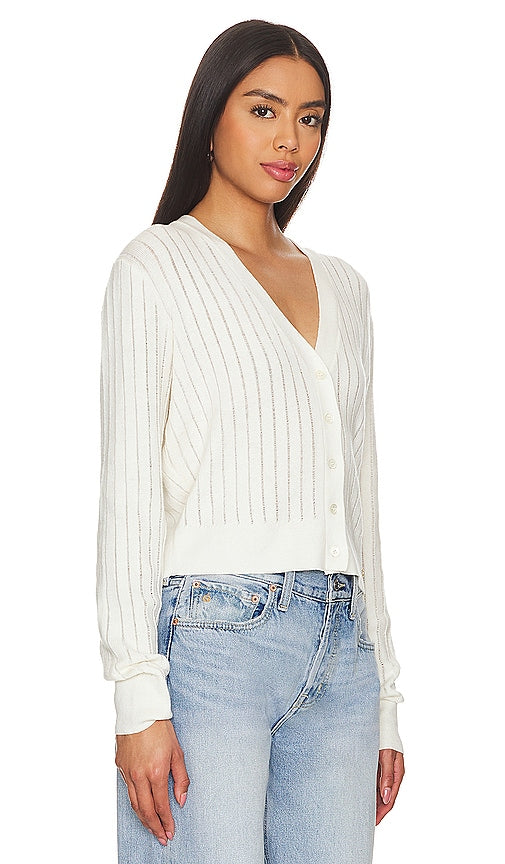 ANINE BING Hazel Cardigan in Cream. - size L (also in M, S) ANINE BING Hazel Cardigan in Cream. - size L (also in M, S) 55% wool 45% cotton. Made in China. Hand wash. Front button closure. Gold-tone monogram pin at hem. Lightweight ribbed knit fabric. ANIN-WK178. A-09-3326-151. Inspired by Scandinavian simplicity and vintage Americana, Los Angeles based fashion house Anine Bing has created a global brand for the modern woman seeking a timeless yet rebellious approach to style. From luxurious staples to wardrobe basics, Anine Bing provides the highest quality fabrications and materials in each collection that effortlessly fuse together edgy feminine designs. Shop the latest in fashion from ANINE BING