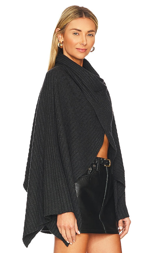 Autumn Cashmere Hybrid Rib Cape in Grey. Autumn Cashmere Hybrid Rib Cape in Grey. 30% cashmere 30% viscose 20% wool 20% polyamide. Made in China. Dry clean only. Surplice cape design. Ribbed knit fabric. AUTU-WK901. RH12528. Autumn Cashmere is a fresh, contemporary and innovative knitwear company, creating cashmere, cashmere blend and cotton sweaters and accessories that excite the senses and inspire fun living. Fan favorites include Kate Hudson, Blake Lively, and Taylor Swift. Shop the latest in fashion from Autumn Cashmere