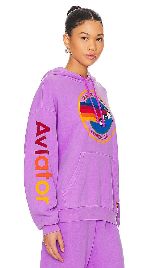 Aviator Nation Relaxed Pullover Hoodie in Purple. - size L (also in M, S, XS) Aviator Nation Relaxed Pullover Hoodie in Purple. - size L (also in M, S, XS) 50% polyester 38% cotton 12% rayon. Made in USA. Machine wash. Drawstring hood. Kangaroo front pocket. Screenprint logo at front and sleeves Logo stitched detail at hem. Lightweight jersey fabric with fleece lining. Item not sold as a set. ANAT-WK103. HDPRXAN. Who doesn't have an obsession with vintage clothing? Paige Mycoskie, creator of Aviator Nation sure does. That's why she began studying the art of authentic vintage clothing and starting creating her own line of tee's, sweatshirts and hats to give the world that well worn feeling of so long ago. Shop the latest in fashion from Aviator Nation