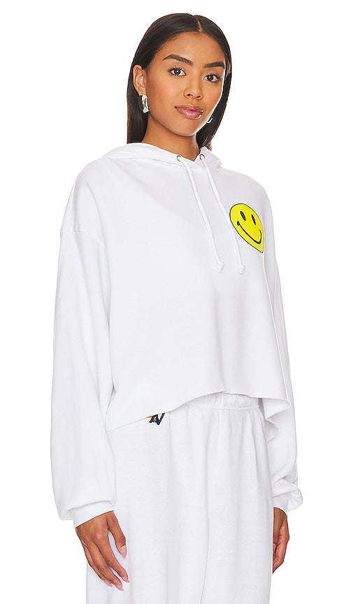 Aviator Nation Smiley 2 Relaxed Cropped Hoodie in White