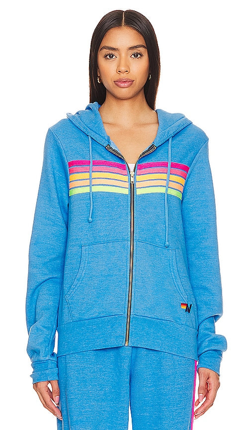 Aviator Nation X Revolve 5 Stripe Hoodie in Blue - Aviator Nation X Revolve - Sweat à capuche à 5 bandes - Bleu - Aviator Nation X Revolve 5 蓝色条纹连帽衫 - Aviator Nation X Revolve 5-Streifen-Hoodie in Blau - Aviator Nation X Revolve 5 스트라이프 후디 블루 색상 - Felpa con cappuccio Aviator Nation X Revolve 5 Stripe in blu