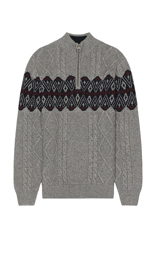 Barbour Alwinton Half Zip in Grey. - size L (also in M, S) Barbour Alwinton Half Zip in Grey. - size L (also in M, S) 65% cotton 35% wool. Made in Turkey. Hand wash. Partial front zipper closure. Cable knit fabric. BBOU-MK2. MKN1541GY52. Shop the latest in fashion from Barbour