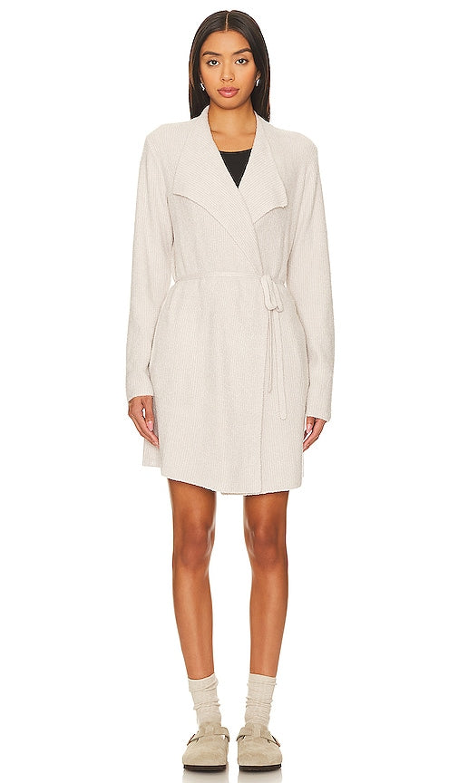 Barefoot Dreams CozyChic Lite Waist Tie Cardi In Silver in Grey. - size L (also in M, S, XL, XS) Barefoot Dreams CozyChic Lite Waist Tie Cardi In Silver in Grey. - size L (also in M, S, XL, XS) This CozyChic Lite Waist Tie Cardigan is the perfect addition to your wardrobe. The fully ribbed cardigan features a drapey lapel that can be worn open or closed with the included skinny belt. With a generous length that falls to mid thigh, it pairs perfectly with the pinched seam slit pant.. 75% nylon 25% rayon from bamboo. Made in China. Machine wash. Open front with detachable waist tie closure. Side seam pockets. Midweight fleece fabric. BDRE-WK6. BDWCL21882. Shop the latest in fashion from Barefoot Dreams