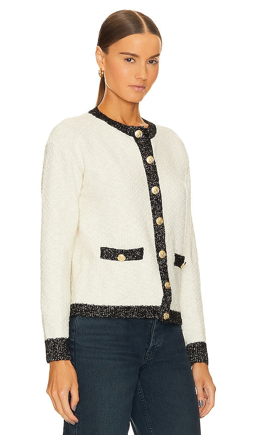 BCBGeneration Contrast Knit Cardigan in Cream. - size XXS (also in XS) BCBGeneration Contrast Knit Cardigan in Cream. - size XXS (also in XS) 41% acrylic 31% cotton 25% polyester 2% metallic 1% spandex. Made in China. Machine wash. Front gold-tone button closure. Front welt pockets. Midweight knit fabric with metallic threading throughout. BGEN-WK101. 1YX5S10. Founded in 1989, BCBGMAXAZRIA is the vision of one man: founder, designer, chairman and CEO Max Azria. Named for the French phrase bon chic, bon genre, a Parisian slang meaning good style, good attitude, the brand embodies a true combination of European sophistication and American spirit. The collection is a resulting line of directional, sophisticated designs in the most luxurious fabrics. Celebrities such as Angelina Jolie, Sarah Michelle Gellar, Rachel Bilson and Eva Mendes amongst many others, are huge fans of the brand. Shop the latest in fashion from BCBGeneration