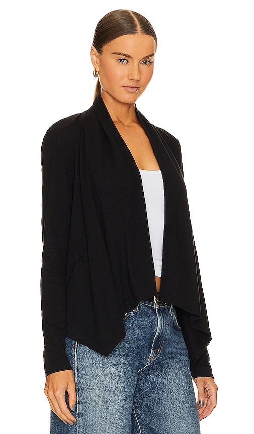 Bobi Flowy Cardigan in Black. - size L (also in M, S, XL, XS) Bobi Flowy Cardigan in Black. - size L (also in M, S, XL, XS) 100% cotton. Made in China. Machine wash. Open front. Side slip pockets. Slub jersey fabric. BOBI-WK182. 54D-48105. Bobi is an LA-based line of dresses and tees made from some of the highest quality jersey at an affordable price. Shop the latest in fashion from Bobi