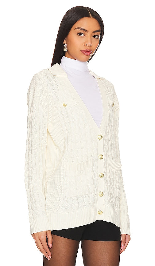 Central Park West Dawson Nautical Cardigan in Ivory. - size L (also in M, S, XS) Central Park West Dawson Nautical Cardigan in Ivory. - size L (also in M, S, XS) Cotton blend. Made in China. Hand wash recommended. Front button closure. Dual front slip pockets with faux pockets at breast with button detail. Lightweight cable knit fabric with ribbed trim. CENT-WK618. CS24-1341S. Based in New York City, Central Park West creates new, fresh, and inspired designs for the edgy, trend conscious girl. By taking luxurious fabrics such as silk and cashmere and integrating design details such as sheer panels and peek-a-boo shirttail hems, Central Park West makes sure you stand out in a crowd no matter what side of town you're on. Shop the latest in fashion from Central Park West