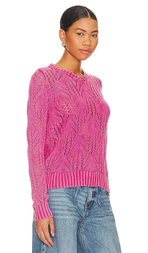 Central Park West Delilah V-neck Sweater in Pink. - size L (also in M, S, XS) Central Park West Delilah V-neck Sweater in Pink. - size L (also in M, S, XS) Acrylic blend. Imported. Hand wash. Lightweight knit fabric. Garment is made with a semi-sheer fabric, undergarments can show through. CENT-WK613. CH23-1259S. Based in New York City, Central Park West creates new, fresh, and inspired designs for the edgy, trend conscious girl. By taking luxurious fabrics such as silk and cashmere and integrating design details such as sheer panels and peek-a-boo shirttail hems, Central Park West makes sure you stand out in a crowd no matter what side of town you're on. Shop the latest in fashion from Central Park West