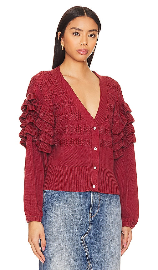 Cleobella Bess Ruffle Cardigan in Rust - Cardigan à volants Cleobella Bess en rouille - Cleobella Bess 铁锈色荷叶边开衫 - Cleobella Bess Rüschen-Cardigan in Rost - Cleobella Bess 러플 카디건 - Cardigan con volant Cleobella Bess color ruggine