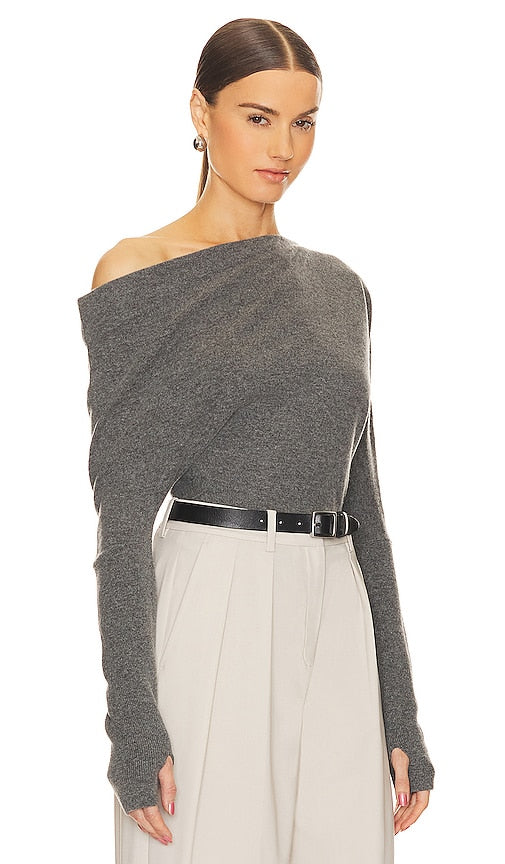 Enza Costa Slouch Sweater in Grey. - size L (also in M, S) Enza Costa Slouch Sweater in Grey. - size L (also in M, S) 90% wool 10% cashmere. Made in China. Hand wash. Off-shoulder styling. Lightweight knit fabric with thumbhole design. ENZA-WK178. WCK3927. Designed to transform everyday basics into luxury essentials, Enza Costa's unique brand of minimalist, modern clothing is crafted with featherweight blends of sumptuous supima cotton, cashmere and silk. Shop the latest in fashion from Enza Costa