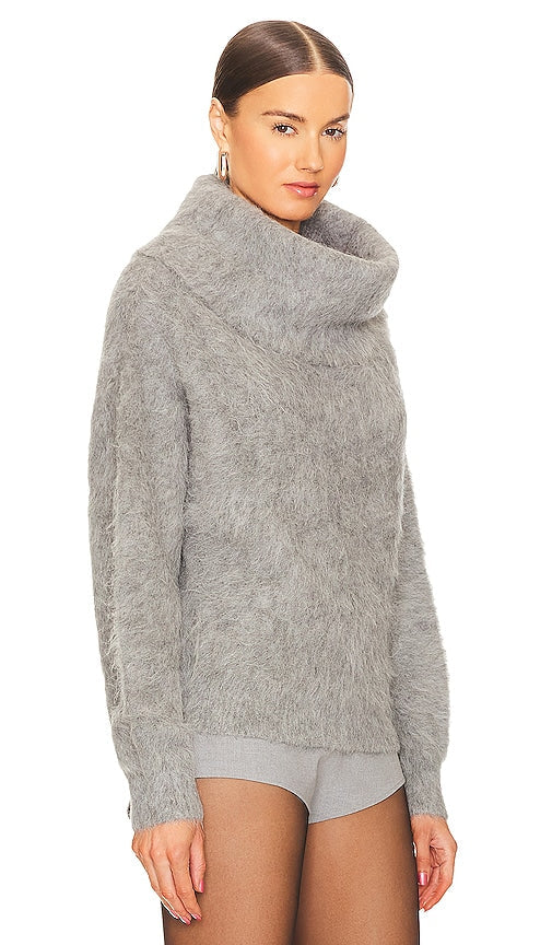 Equipment Rodi Sweater in Grey. - size L (also in M, S, XL, XS, XXS) Equipment Rodi Sweater in Grey. - size L (also in M, S, XL, XS, XXS) 78% alpaca 19% nylon 3% spandex. Made in China. Hand wash. Wide foldover neckline. Hairy knit fabric. EQUI-WK250. K0081Y8010. Timeless and innovative, the Equipment collection features modern, androgynous silhouettes, discreet sex appeal, luxe fabrics, unexpected details and feminine riffs on men's shirting. The range of prints, fabrics and silhouettes negotiate the many facets of the Equipment woman: she is strong, chic, elegant, adventurous, sexy and is above all, classic. Inspired and manifesting a modern perspective, the collection is infused with a freshness that propels the tried and true classic into the future of fashion. This contemporary approach on signature pieces pays homage to the legacy of the brand originally launched in the 1970s while maintaining the perfect balance of cool and understated elegance. Shop the latest in fashion from Equipment