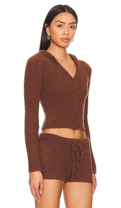 Frankies Bikinis Harlowe Zip Up Hoodie in Chocolate