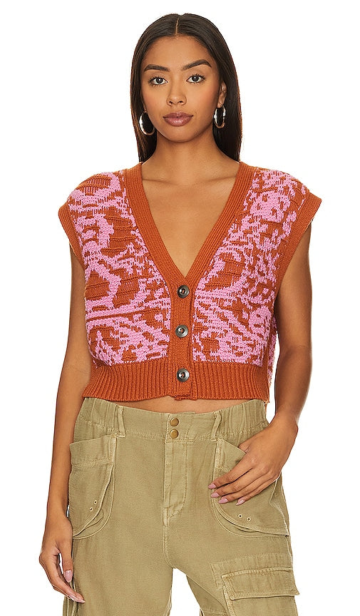 Free People Tapestry Vest in Rust. - size XL (also in XS) Free People Tapestry Vest in Rust. - size XL (also in XS) 60% cotton 40% acrylic. Made in Cambodia. Hand wash. Front button closure. Ribbed trim. Midweight crochet fabric. Please note top not included. FREE-WK1121. OB1746331. Free People invokes a spirit of femininity and creativity. Throughout their line of sweaters, tees, dresses and more, each piece incorporates a high level of quality and originality that reflects their adventurous it girl. With all that's constricting in the world today, Free People says your clothes don't have to be. Be yourself, be creative, be free. Shop the latest in fashion from Free People