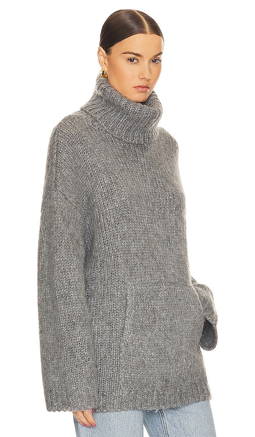 Helsa Janin Sweater in Grey. - size L (also in M, S, XL, XS, XXS) Helsa Janin Sweater in Grey. - size L (also in M, S, XL, XS, XXS) 53% merino wool 30% polyamide 17% alpaca. Made in China. Hand wash. Front kangaroo pocket. Oversized fit. Midweight chunky knit fabric with turtleneck styling. HLSA-WK33. HEK42 H23. Inspired by her Scandinavian heritage, founder Elsa Hosk, honors the philosophy of timeless wardrobe staples, comfort, functionality, and minimalism. Influenced by the colors and materials found in nature, Helsa focuses on an Earth-First approach creating well-made pieces that offer a true sense of confidence and leisure that will last you season after season. Shop the latest in fashion from Helsa