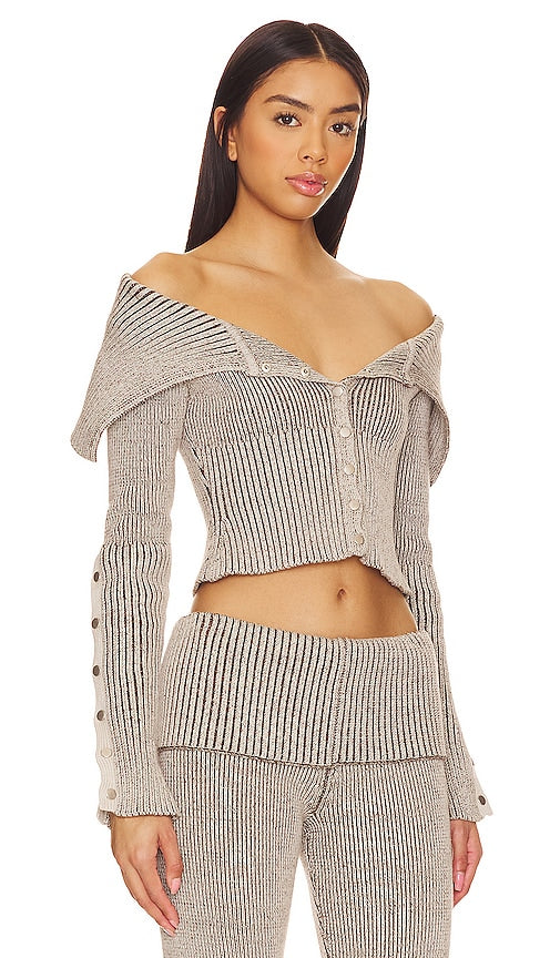 Jaded London Plated Popper Tribeca Sweater in Grey. - size L (also in M) Jaded London Plated Popper Tribeca Sweater in Grey. - size L (also in M) 100% cotton. Made in China. Hand wash. Front snap button closure. Off shoulder styling. Midweight ribbed knit fabric. Item not sold as a set. JLON-WK2. JWH3883. Shop the latest in fashion from Jaded London
