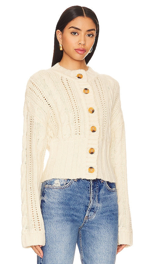 L'Academie Eleni Knit Sweater in Cream. - size M (also in S) L'Academie Eleni Knit Sweater in Cream. - size M (also in S) 99% acrylic 1% nylon. Made in China. Dry clean recommended. front button closure. Midweight knit fabric. LCDE-WK301. LAK193 H23. L'Academie has mastered the art of elegant, sophisticated dressing with chic and polished pieces complete with stylish details. These contemporary pieces are effortlessly easy to style with your favorite denim or classic heels. Shop the latest in fashion from L'Academie