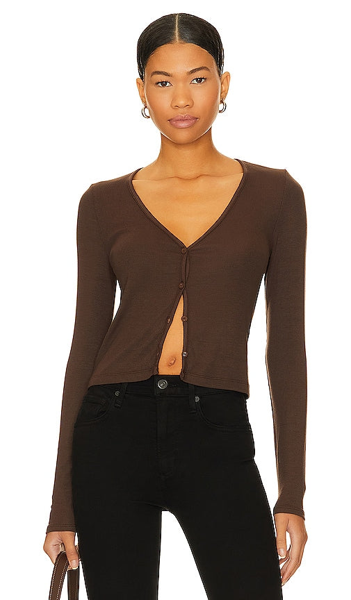 LA Made Sweet V Cardi in Chocolate - LA Made Sweet V Cardi en chocolat - LA Made Sweet V Cardi 巧克力 - LA hat Sweet V Cardi in Schokolade hergestellt - LA 메이드 스위트 브이 카디 초콜릿 - LA ha realizzato Sweet V Cardi in cioccolato