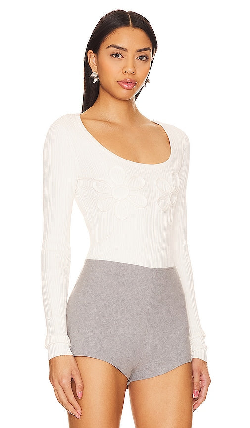 Lovers and Friends Quinella Sweater in Ivory. - size L (also in M, S, XL, XS) Lovers and Friends Quinella Sweater in Ivory. - size L (also in M, S, XL, XS) Dive into the world of cozy chic with Lovers and Friends' Quinella Sweater in enchanting Ivory. Crafted from a versatile, soft ribbed jersey fabric, this sweater is a sensory delight that seamlessly blends comfort and style. The fun tonal design at the bust adds a playful twist, making it a must-have for fashion-forward souls.. 90% cotton 10% elastane. Made in China. Hand wash. Midweight ribbed knit fabric with tonal floral detailing at bust. LOVF-WK1247. LFK911 S24. Constantly inspired by the laid back Los Angeles lifestyle in which the brand was founded, Lovers and Friends exudes ease and wearability, creating an effortlessly chic look that is California cool. Shop the latest in fashion from Lovers and Friends