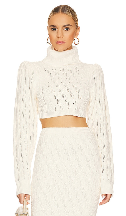 LPA Laraine Cable Turtleneck Sweater in Ivory. - size L (also in M, S, XL, XS) LPA Laraine Cable Turtleneck Sweater in Ivory. - size L (also in M, S, XL, XS) 60% cotton 40% acrylic. Made in China. Dry clean only. Foldover neckline. Padded shoulders. Midweight cable knit fabric. Item not sold as a set. LPAR-WK219. LPK252 R22. Meet LPA - The coveted label designed by Lara Pia Baroncini, for the quintessential cool girl with a raw, unapologetic attitude. The line oozes Italian romance, effortless California cool, and a casual tomboy appeal. Cut from satins and silks to cashmere and wool blends, featuring feminine shapes with flattering drapes, the eponymous ready-to-wear label is made with love for bad chicks. Shop the latest in fashion from LPA