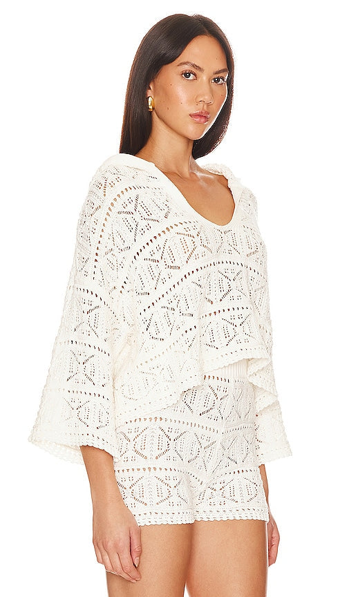LSPACE Diamond Eyes Sweater in Cream. - size L (also in M, XL) LSPACE Diamond Eyes Sweater in Cream. - size L (also in M, XL) 100% cotton. Made in China. Hand wash. Open crochet knit fabric with wide sleeves. Item not sold as set. LSPA-WK39. DEYSW24. California-based designer Monica Wise delivers a collection of stylish swimwear that brings a state of opulence to any poolside get-together. Pieces are fashion forward, offering modern designs in luxurious materials that are sophisticated, but also beach appropriate. Shop the latest in fashion from LSPACE