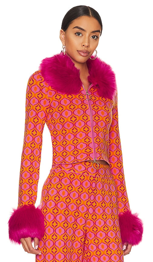 Show Me Your Mumu Zermatt Faux Fur Zip Up in Pink. - size S (also in XS) Show Me Your Mumu Zermatt Faux Fur Zip Up in Pink. - size S (also in XS) Self: 48% viscose 30% polyester 22% nylon Faux fur: 70% acrylic 30% polyester. Made in China. Dry clean only. Front double zipper closure. Faux fur collar and cuffs. Ribbed knit fabric. SHOW-WK144. MR2-5183. Mumu is not simply a garment, it is a lifestyle. Spontaneous. Fun. Easy going. Unique. Versatile. Imaginative. It all encompasses the mumu, and a way of life. Shop the latest in fashion from Show Me Your Mumu