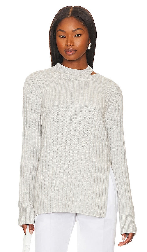 St. Agni Deconstructed Rib Knit Jumper in Light Grey. - size L (also in M) St. Agni Deconstructed Rib Knit Jumper in Light Grey. - size L (also in M) 95% cotton 5% cashmere. Made in China. Hand wash. Shoulder cut-out. Ribbed knit fabric with side slit. SAGN-WK1. S23-402SGR. Shop the latest in fashion from St. Agni