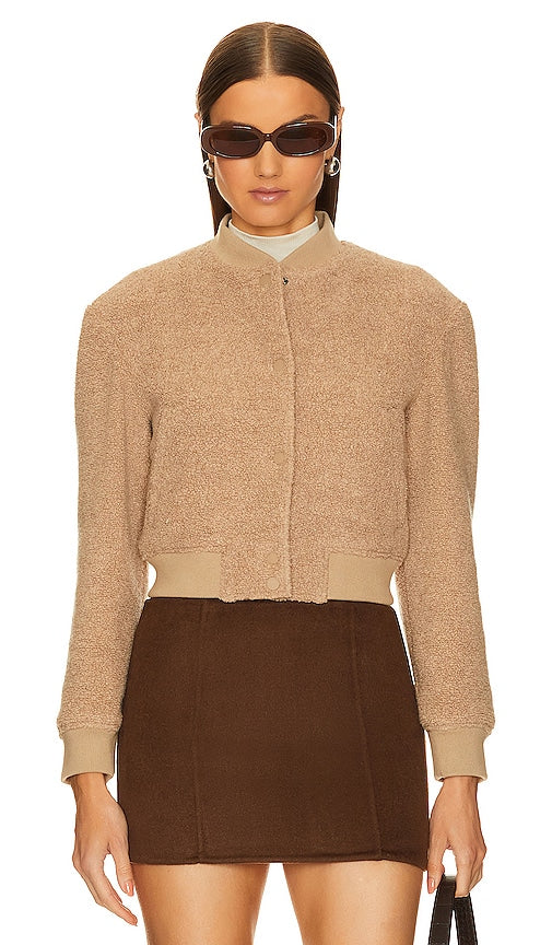 Theory Shrunken Fleece Teddy Jacket in Tan. - size L (also in S, XL) Theory Shrunken Fleece Teddy Jacket in Tan. - size L (also in S, XL) Self: 60% recycled wool 22% nylon 13% polyester 4% other fibers 1% elastane Lining: 100% polyester Contrast Fabric: 87% cotton 10% polyester 3% elastane. Made in Vietnam. Dry clean only. Front button closure. Side slant pockets. Faux fur teddy knit with ribbed knit cuffs and hem. THEO-WO370. N0921403. Theory is a visionary concept for modern intelligent fashion forward people. Founded in New York and made by the finest of fabrics, this makes the working everyday person feel powerful, ready to face their day. Shop the latest in fashion from Theory