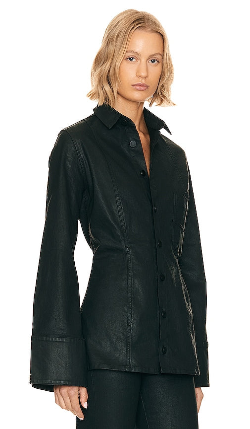3x1 Marina Slim Top in Black. - size M (also in S, XS) 3x1 Marina Slim Top in Black. - size M (also in S, XS) 98% cotton 2% elastane. Made in Italy. Machine wash. Front button closure. Button cuffs with bell sleeves. Breast slip pocket. Lightly cinched at waist. Midweight coated denim fabric Item not sold as a set. 3X1-WS17. 31-WT1C13-DS1130. Founder of 3x1, Scott Morrison, was set to accomplish one mission, to the make the best jeans in the world. The best quality, fit, design, and fabric are contributors to creating the perfect jeans. All pieces are unique, one of a kind and made in NYC. Shop the latest in fashion from 3x1