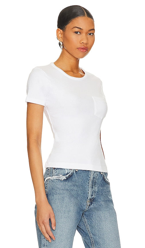 AGOLDE Arlo Rib Pocket Tee in White. - size L (also in XL, XS) AGOLDE Arlo Rib Pocket Tee in White. - size L (also in XL, XS) Every wardrobe deserves this staple. Say hello to the AGOLDE Arlo Rib Pocket Tee in White - your next closet essential. Crafted from soft ribbed jersey fabric, it features a handy breast slip pocket, adding a touch of detail to a classic white tee. A timeless piece, it's perfect to dress up or down. Pair it with your favorite denim for an effortlessly chic daytime look.. 49% organic cotton 49% lyocell 2% spandex. Made in USA. Machine wash. Ribbed jersey fabric with breast slip pocket. AGOL-WS210. A7233-1260. Based in downtown Los Angeles, AGOLDE is a premium denim label dedicated to highlighting youth culture throughout the decades. Instead of simply replicating your favorite styles from the past, they set out to recreate them with a contemporary approach in mind. The styles may emit an irreverent attitude, but AGOLDE is serious when it comes to quality. They use only the most innovative fabrics sourced from around the world and facilitate all product development to create denim of the highest caliber. Shop the latest in fashion from AGOLDE