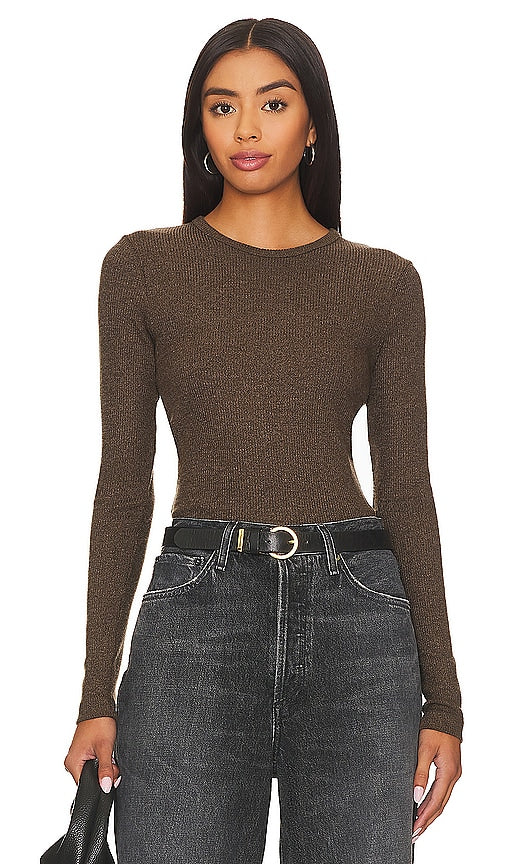 AGOLDE Delphi Slim Tee in Brown. - size L (also in XL) AGOLDE Delphi Slim Tee in Brown. - size L (also in XL) Elevate your casual chic style with AGOLDE Delphi Slim Tee. Crafted from lightweight ribbed knit fabric, this long-sleeve tee is perfect for adding a touch of casual elegance to your wardrobe.. 50% polyester 32% cotton 18% rayon. Made in USA. Machine wash. Lightweight ribbed jersey fabric. AGOL-WS204. A7230-1352. Based in downtown Los Angeles, AGOLDE is a premium denim label dedicated to highlighting youth culture throughout the decades. Instead of simply replicating your favorite styles from the past, they set out to recreate them with a contemporary approach in mind. The styles may emit an irreverent attitude, but AGOLDE is serious when it comes to quality. They use only the most innovative fabrics sourced from around the world and facilitate all product development to create denim of the highest caliber. Shop the latest in fashion from AGOLDE