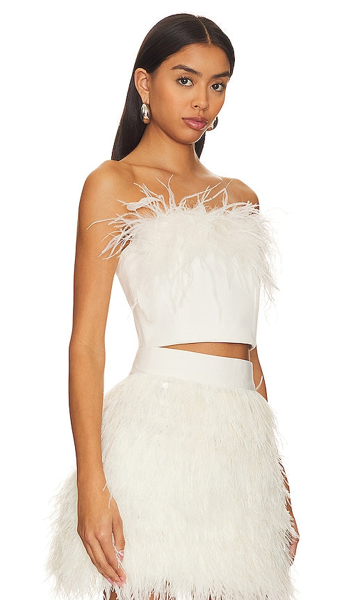 Alice + Olivia Ceresi Feather Top in White. - size 0 (also in 10, 2, 6, 8) Alice + Olivia Ceresi Feather Top in White. - size 0 (also in 10, 2, 6, 8) Self: 64% polyester 32% viscose 4% elastane Lining: 94% polyester 6% elastane Contrast Fabric: 80% dyed ostrich feathers 20% dyed turkey feathers. Made in China. Dry clean only. Exposed back zipper closure. Boned bodice. Smocked back panel. Midweight suiting fabric with dyed feather embellished neckline. Item not sold as a set. ALI-WS609. CC310A44023. Launched in 2002, alice + olivia by Stacey Bendet is a sophisticated brand with a playful sensibility, which epitomizes the personality and style of its founder, Stacey Bendet. The brand was born from Stacey's personal quest to create a flattering pair of pants, and has since grown into a full womens ready to wear collection, including outerwear, dresses, and the perfect pants that started it all. Now a full lifestyle collection, the brand has become a Hollywood favorite with fans including Gwyneth Paltrow, Fergie, Anne Hathaway, Jennifer Lopez, Blake Lively, and Taylor Swift. Shop the latest in fashion from Alice + Olivia