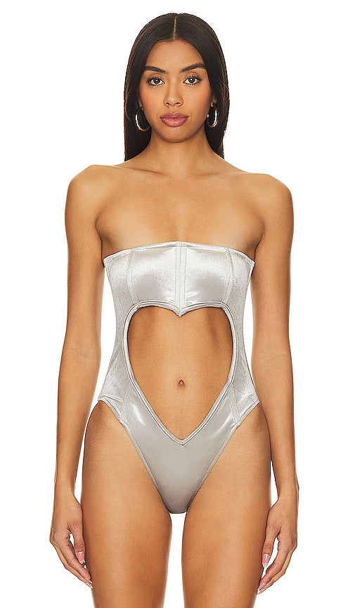 AMOR MIA Venera Bodysuit Silver in Metallic Silver. - size L (also in S, XL, XS) AMOR MIA Venera Bodysuit Silver in Metallic Silver. - size L (also in S, XL, XS) 95% polyester 5% spandex. Made in Indonesia. Hand wash. Pull-on styling. Hidden back zipper closure. Removable padded bust. Boned bodice Heart shaped bodice cut-out. Velvet fabric. AMIA-WS2. VENERABOD. Shop the latest in fashion from AMOR MIA