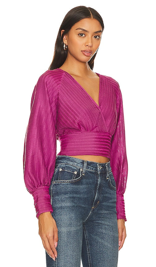 ASTR the Label Pernilla Top in Pink. - size M (also in S, XL, XS) ASTR the Label Pernilla Top in Pink. - size M (also in S, XL, XS) 100% polyester. Made in China. Dry clean only. Hidden side zipper closure. Surplice neckline. Blouson sleeves with button cuffs. Shirred fabric. ASTR-WS375. ACT17858S. Taking inspiration from the latest trends and affinity for all things feminine, the creative collective behind ASTR the Label aims to immerse their customers into a world of effortless beauty. Since 2012, the brand has stood as a wearable interpretation of attainable style for all occasions. Featuring distinctive looks that exude romance, ASTR the Label offers collections that are recognized for their quality and unique combination of contemporary sophistication, versatility and chic design. By catering to the fashion needs of the ASTRBabe, our collections continually feature on-trend and thoughtfully crafted garments for the modern woman. Shop the latest in fashion from ASTR the Label