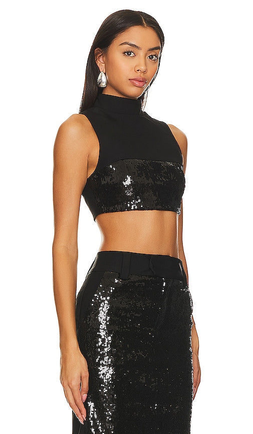 Camila Coelho Venning Sequin Crop Top in Black. - size L (also in M, S, XL, XS) Camila Coelho Venning Sequin Crop Top in Black. - size L (also in M, S, XL, XS) Self: 63% rayon 33% nylon 4% spandex Lining: 100% polyester. Made in China. Dry clean only. Hidden back zipper closure. Tonal sequin embellishments and jersey fabric panels. Item not sold as a set. COEL-WS384. CCS594 H23. Camila Coelho's namesake collection is as bright as the Brazilian sun. The beauty and fashion entrepreneur wanted to create a label that reflects her roots: she was born in Brazil, and lived there until she moved to the States at fourteen. With bold palettes and sexy matching sets, her pieces evoke the feeling of lingering over a caipirinha in Fernando de Noronha or dancing in the colorful streets of Salvador. It's an elevated line for all the girls out there who dream big. More than anything, the Camila Coelho Collection empowers women to be both strong and glamorous; to take on the world in vibrant style, and have fun doing so. Shop the latest in fashion from Camila Coelho
