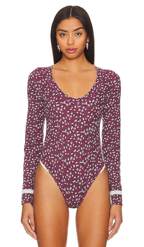 Free People x Intimately FP Sugar Dreams Bodysuit In Wine Combo in Wine
