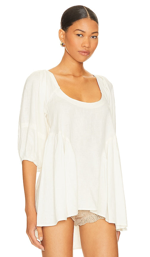 Free People x Revolve Blossom Tunic in White. - size L (also in XL) Free People x Revolve Blossom Tunic in White. - size L (also in XL) Charm in Free People x Revolve's Blossom Tunic in 'Optic White.' This lightweight linen piece features an alluring low back with dual tie closures and girly puff sleeves. The asymmetric flowy hem adds a touch of whimsy, perfect for showcasing your sweet, feminine flair.. 51% rayon 49% linen. Made in India. Machine wash. Unlined. Back tie closures and elastic waist. Elastic puff sleeves. Lightweight linen fabric with asymmetric hem. FREE-WS4404. OB1789377. Free People invokes a spirit of femininity and creativity. Throughout their line of sweaters, tees, dresses and more, each piece incorporates a high level of quality and originality that reflects their adventurous it girl. With all that's constricting in the world today, Free People says your clothes don't have to be. Be yourself, be creative, be free. Shop the latest in fashion from Free People