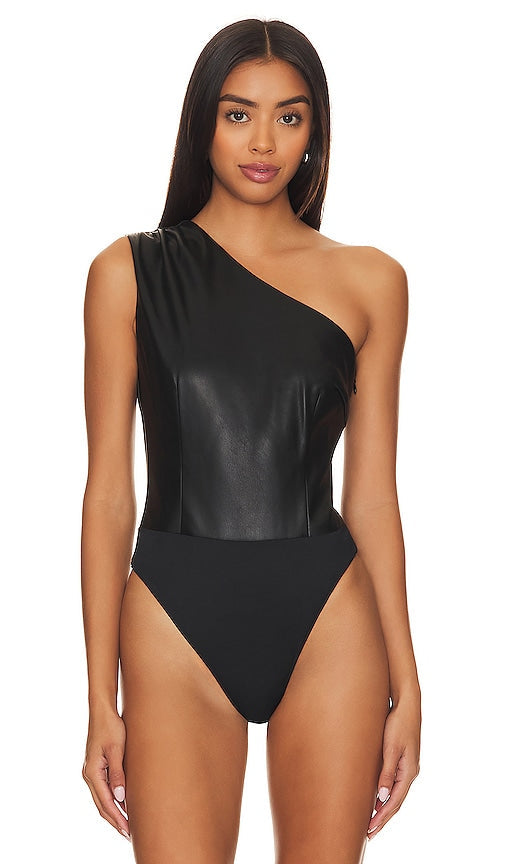 Karina Grimaldi Crisanta Bodysuit in Black. - size M (also in S, XS) Karina Grimaldi Crisanta Bodysuit in Black. - size M (also in S, XS) Self: 50% polyurethane 50% polyester Contrast Fabric: 87% nylon 13% spandex Lining: 95% polyester 5% spandex. Made in China. Dry clean only. Gusset snap button closure with thong back. One shoulder styling. Smooth faux leather fabric. KARI-WS258. 3595. In 2001, designer Karina Grimaldi relocated from Buenos Aires to Miami, where she began working on her eponymous line of clothing. Officially launched in 2003, her cool collection of womenswear offers detailed pieces inspired by Miami's multicultural and cosmopolitan atmosphere. Shop the latest in fashion from Karina Grimaldi